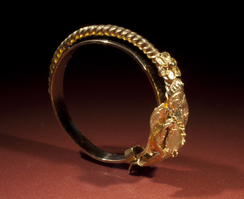 Historical Archive: Eros ring Greek gold earring, around second century CE set on modern ring band p.c. Sands of Time