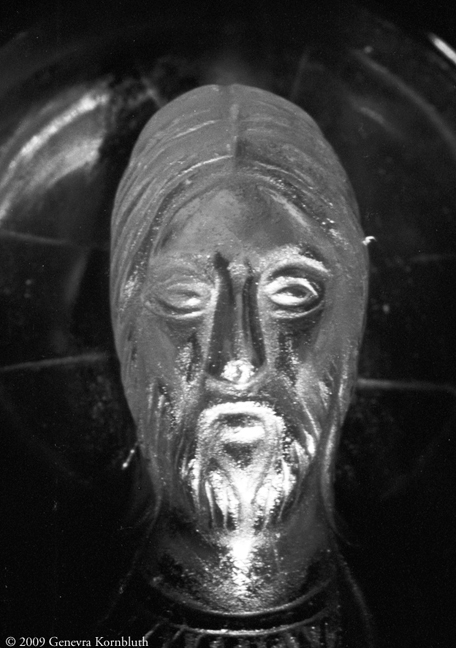 Sapphire cameo of Christ. Byzantine, twelfth century, Constantinople? Details below document the varying height of relief and its effect on light transmission, the straight cuts of a flat engraving wheel, and the facial features and gesture of blessing. Washington, D.C., Dumbarton Oaks Byzantine Collection.